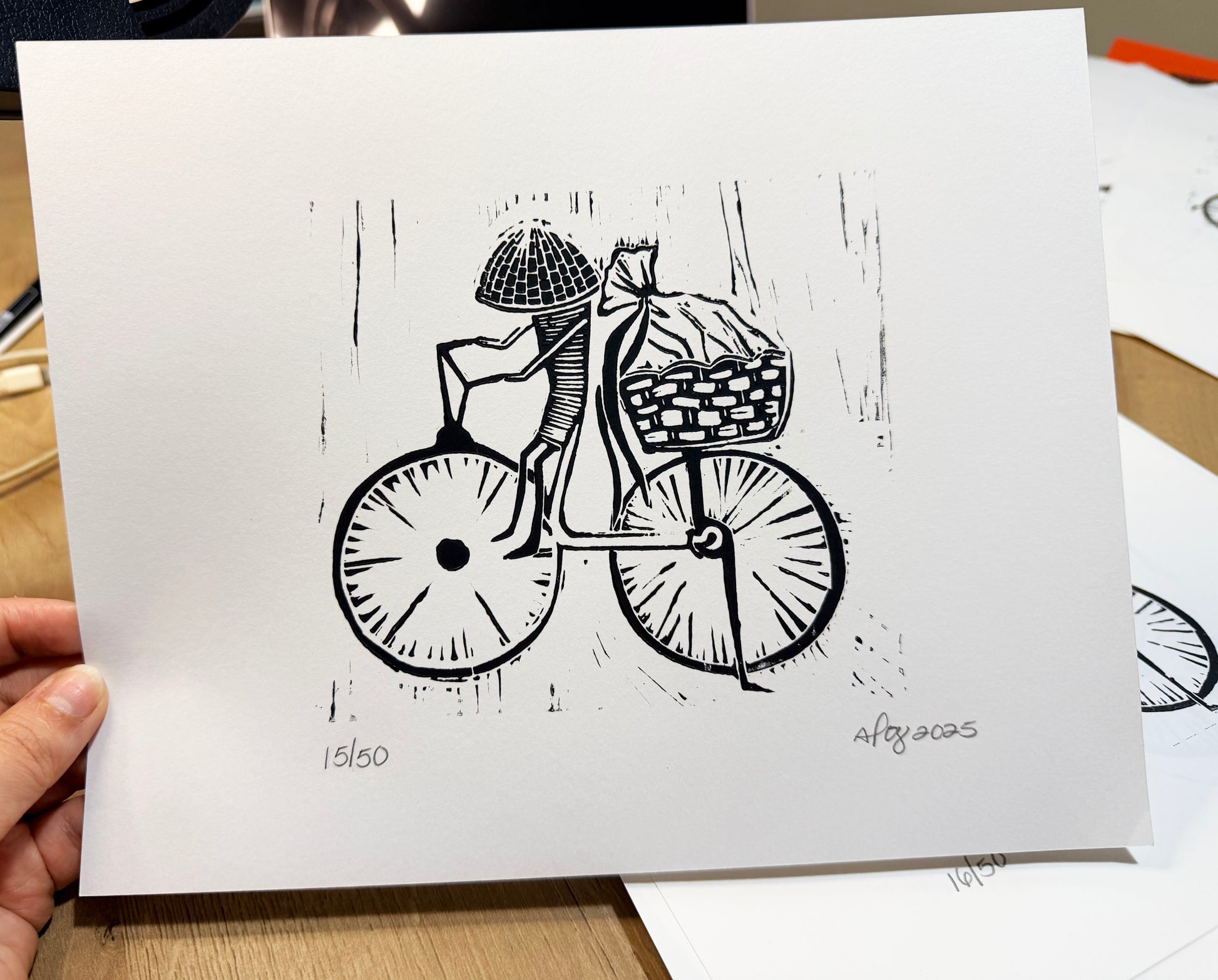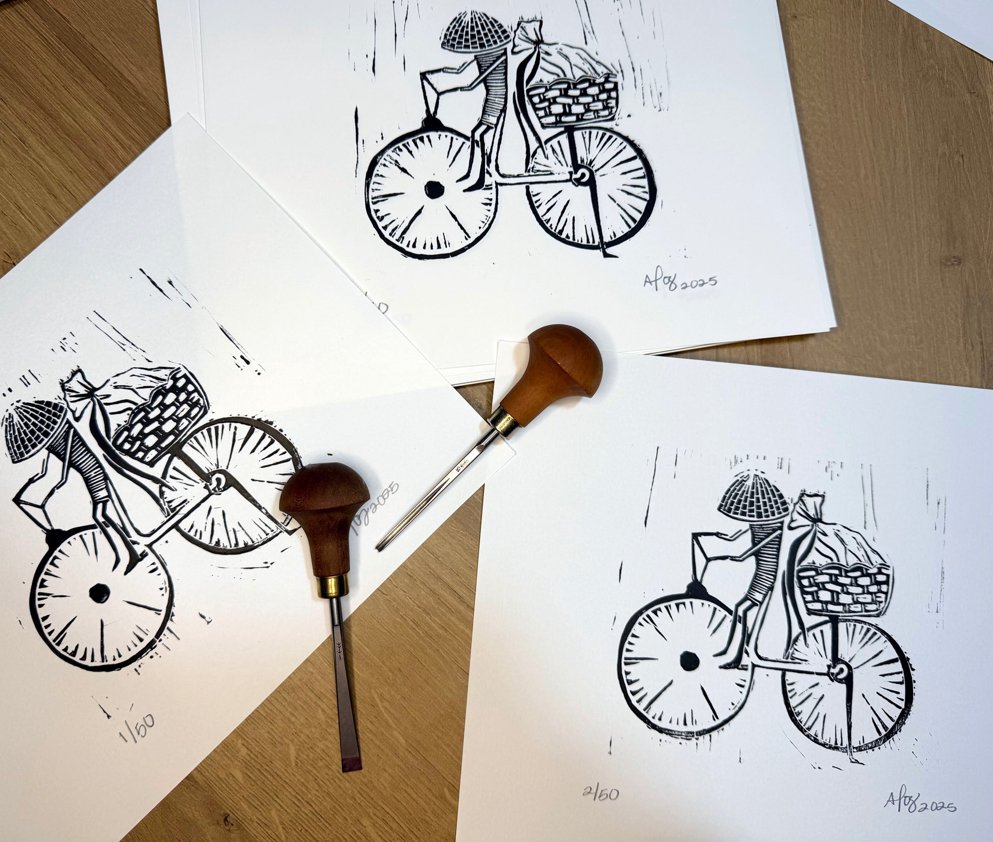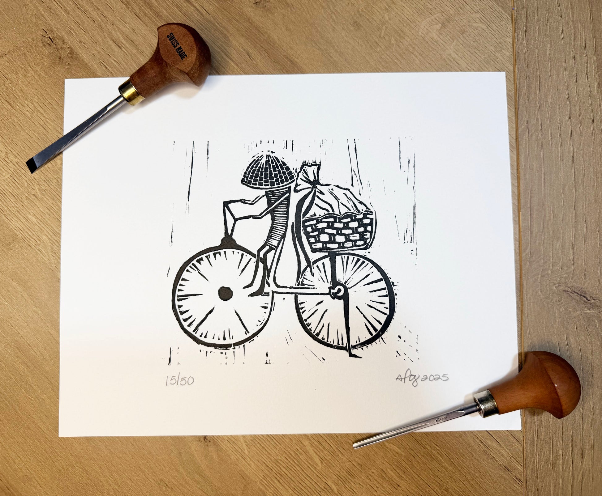 This Linocut its been meticulously hand carved into linoleum and printed onto acid free 120 gms Strathmore paper, using Cranfield oil based ink.